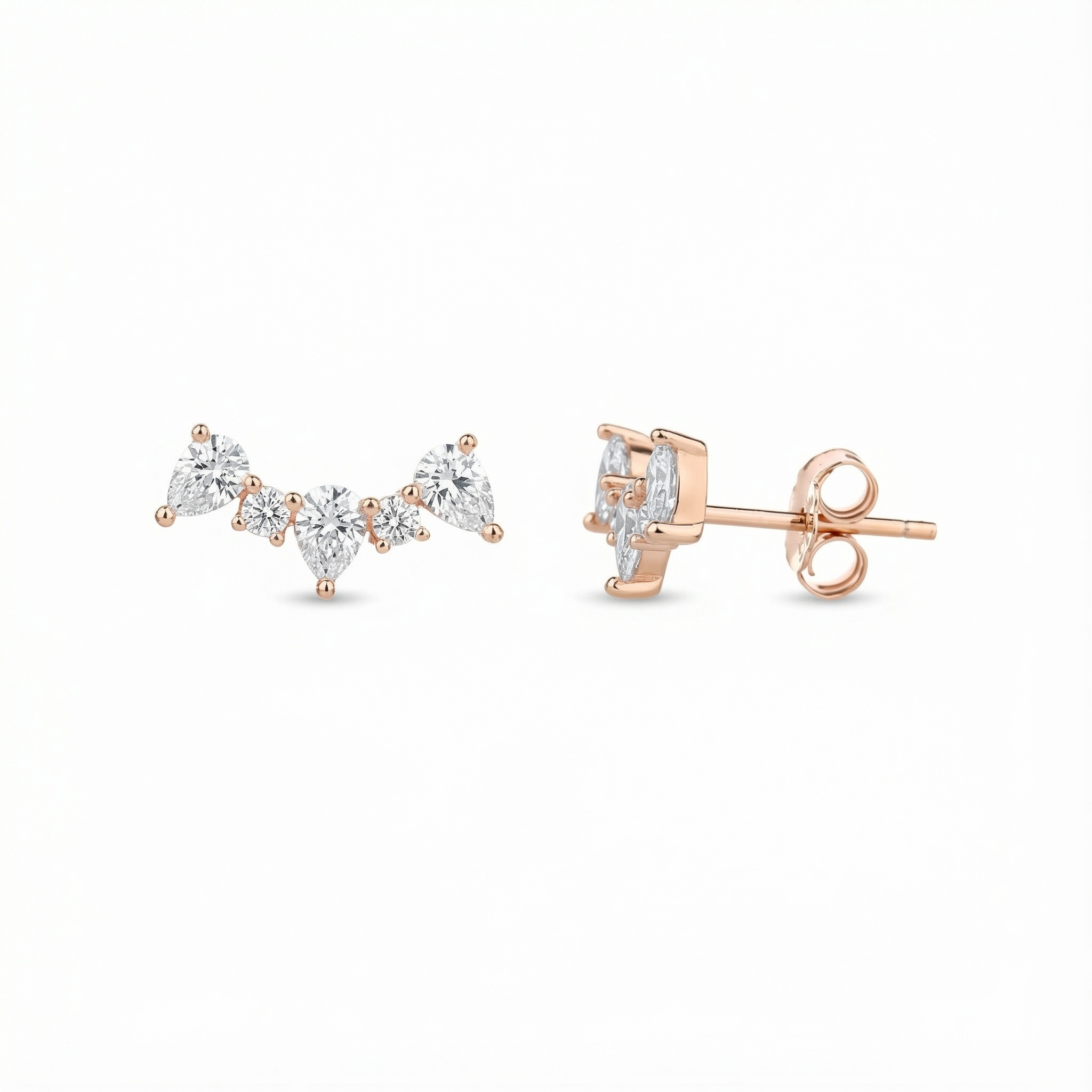 ומצופים זהב אדום (רוז גולד) משובצים באבני זרקון העגילים מגיעים כזוג