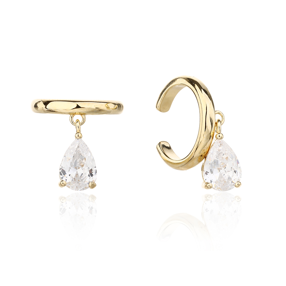עגיל צמוד עשוי פליז בציפוי זהב 14K 2 מיקרון משובץ באבני זרקון העגילים מגיעים כזוג.