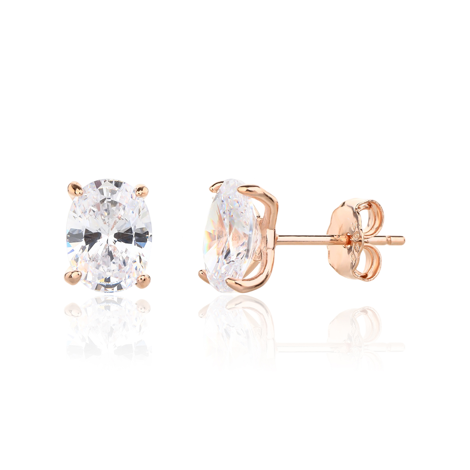 עשוי כסף אמיתי 925 בציפוי זהב אדום (רוז גולד) משובץ באבני זרקון העגילים מגיעים כזוג.