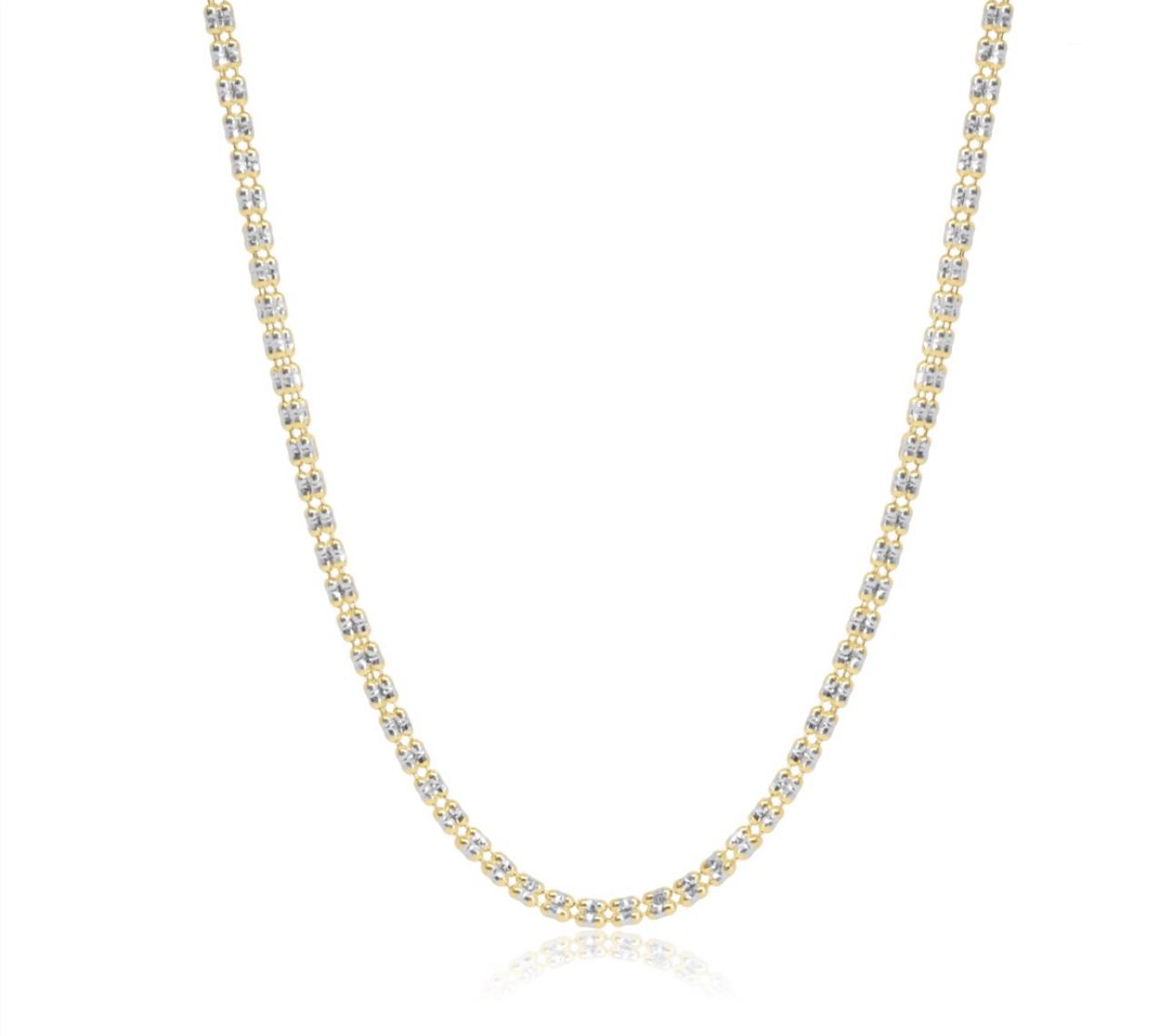 שרשרת אייס 3 שורות בחיתוך לייזר עשויה כסף אמיתי 925 איטלקי בציפוי זהב משולב כסף קיימת באורכים 40/50/60/70 ס"מ