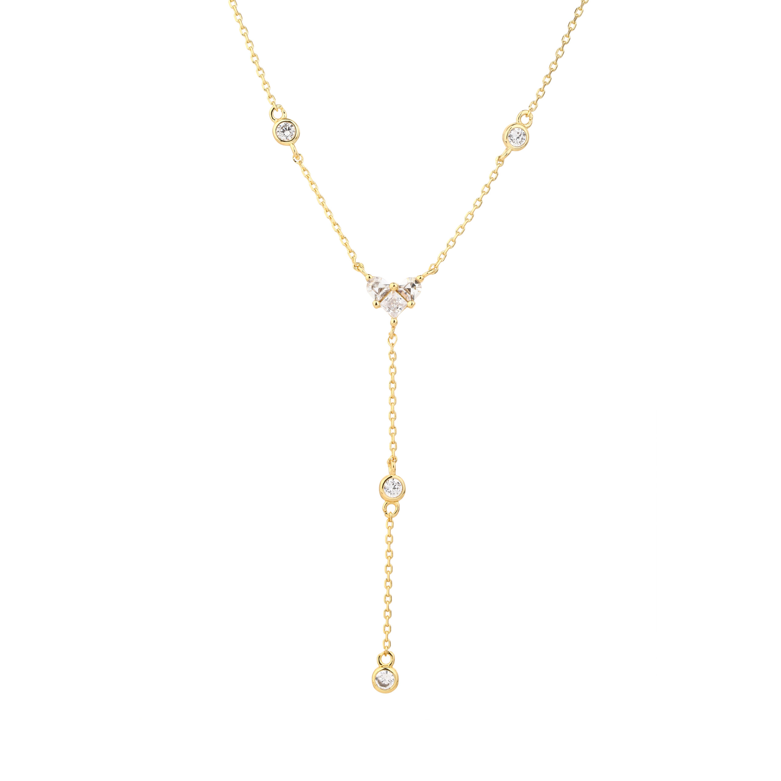 שרשרת עניבה נופלת עשויה פליז בציפוי זהב 14k (2 מיקרון) משובצת אבני זרקון אורך השרשרת: 40+5 ס”מ